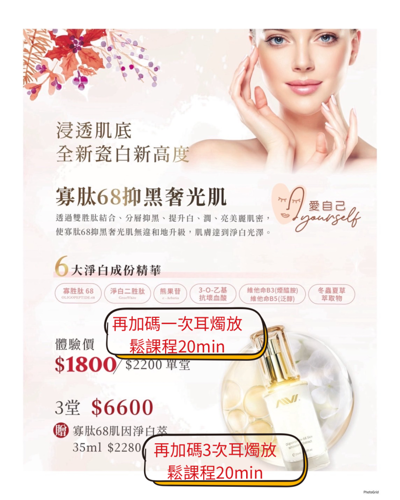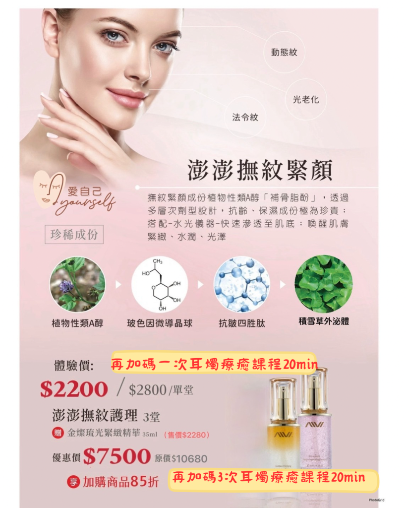 (煥顏美肌慕斯+保濕精華正貨一瓶+耳燭療癒課程一堂20min)